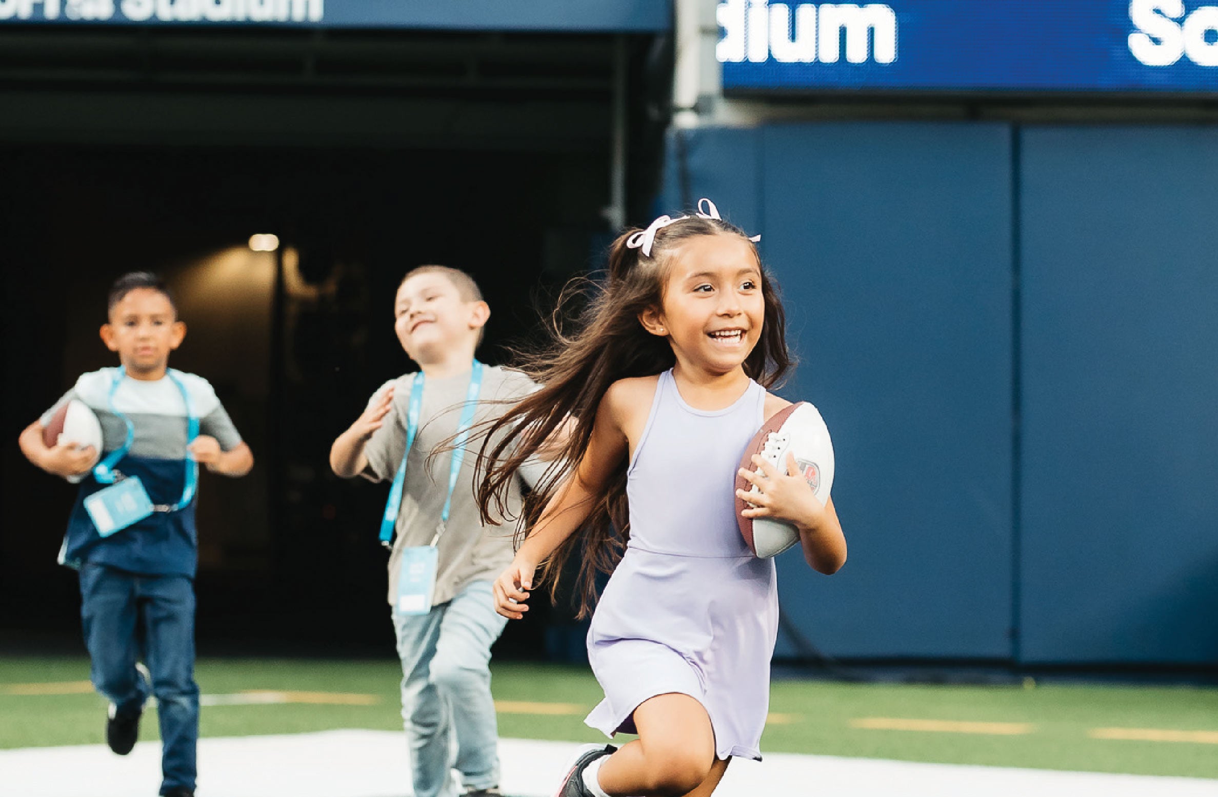 Feel like a pro as you take the field through the player tunnel! Once on the turf, you will be able to visit locker rooms, compete in on-field challenges and experience the post-game interview room!