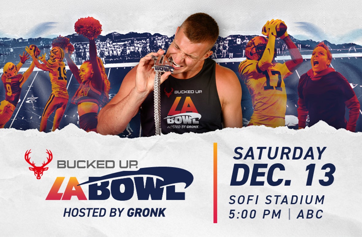 Inglewood, CA (September 30, 2025) – LA Bowl just got Bucked Up! Bucked Up, a leading sports nutrition and lifestyle brand, becomes the title sponsor for LA Bowl Hosted By Gronk at SoFi Stadium on Saturday, December 13, 2025.